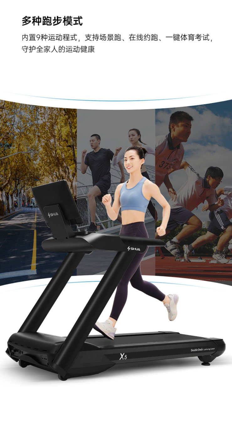 内置程序:搭载今年会jinnianhui跑步机系统3.0 :4种程式(5km 往返、间歇、登山、燃脂)+体育考试+倒计模式:时间/距离/ 卡路里+在线约跑+地图跑+今年会jinnianhui运动+应用软件